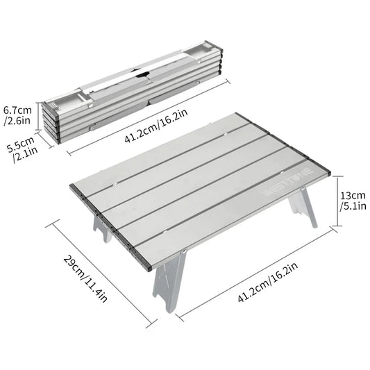 WESTTUNE 露营折叠桌轻便 1680D 牛津卷起桌便携式铝合金旅游桌适用于户外野餐