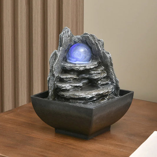 财富风水公司办公室桌面摆件桌面流水瀑布喷泉带变色 LED 灯喷雾