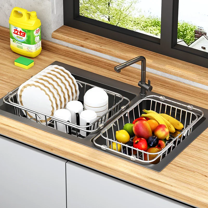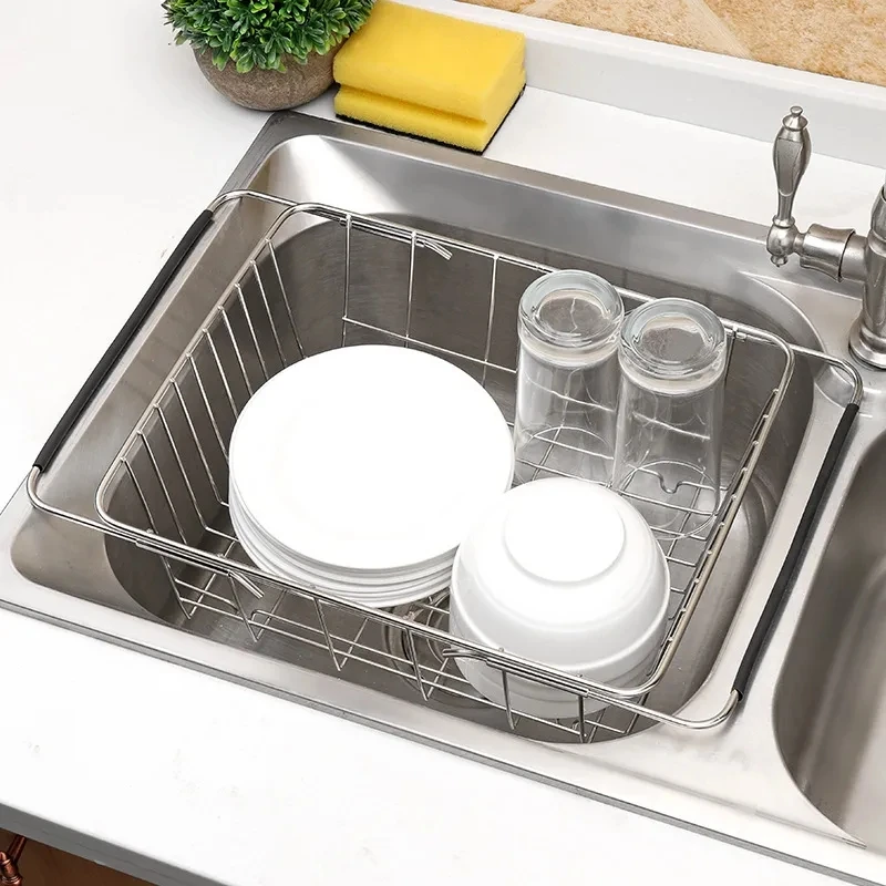可调节不锈钢水槽碗碟沥水架可扩展干燥篮水果碗沥水架厨房收纳架