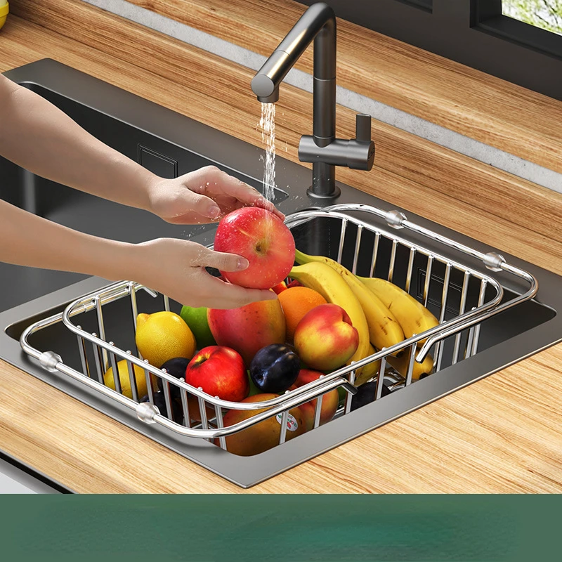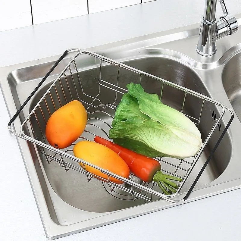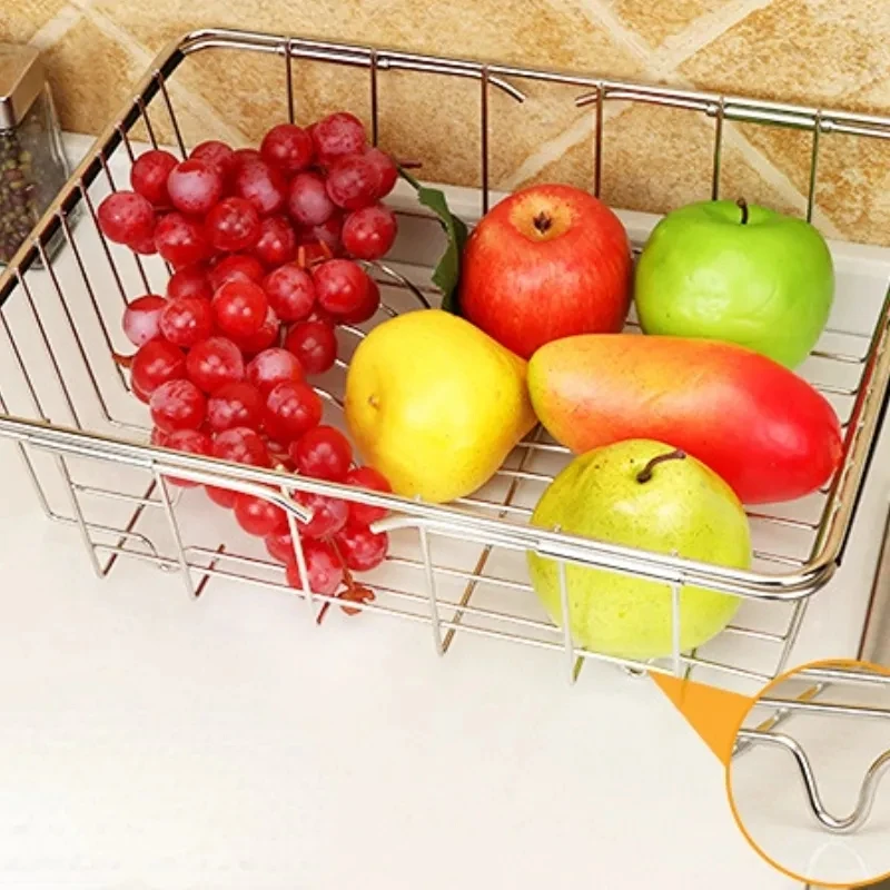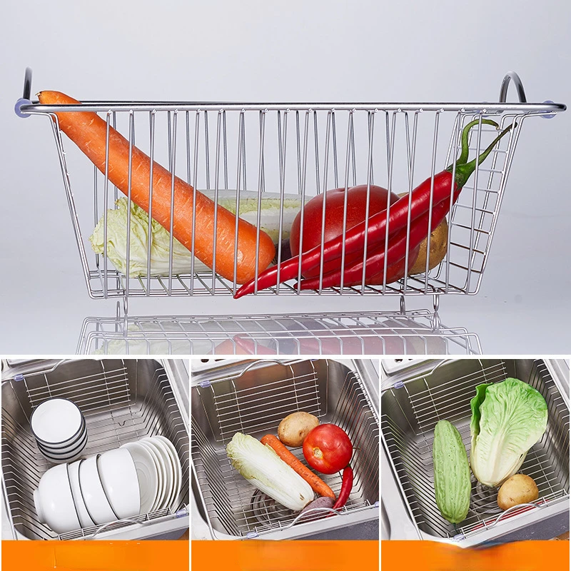 名称:带卡槽伸缩不锈钢沥水篮