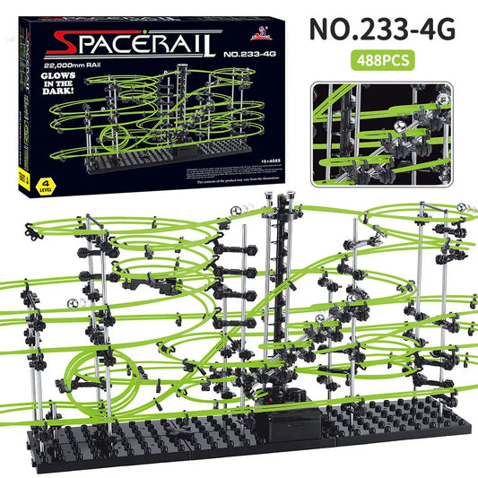 193/343/488 Uds. Bola de carrera eléctrica luminosa, construcción de mármol, Montaña Rusa de plástico, carril de nivel 1-9, pista de juguete