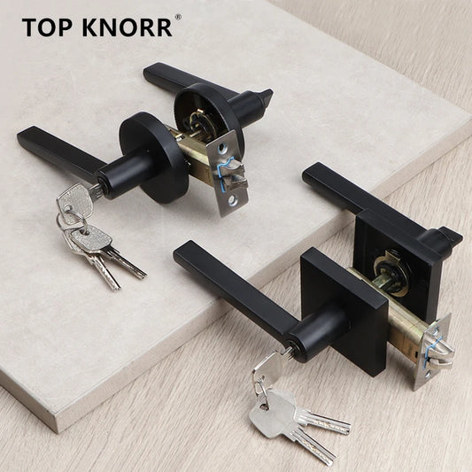 TOP KONRR Manija de Cerradura de Puerta Cerradura de habitación Negra Cerradura de manija de aleación de Zinc con Llave Manija de Cerradura de Puerta Cerradura Negra para Dormitorio Cerradura para el hogar Cerradura antirrobo