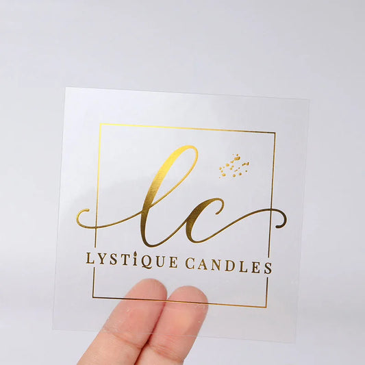 100 unids/lote pegatinas de logotipo personalizado transparente lámina de oro transparente pegatinas de logotipo de negocios de plata pegatinas de boda