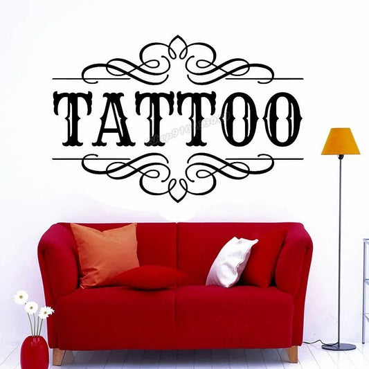 Tatuaje personalizado pegatina con logotipo para pared para decoración para salón de tatuajes, pegatinas de pared para estudio de tatuajes de vinilo, decoración de ventanas, calcomanías artísticas extraíbles B164