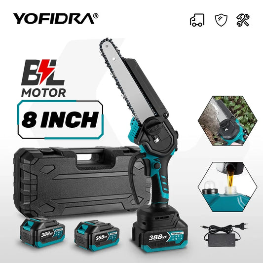 Yofidra 8 Inch Brushless Electric Chainsaw Cordless Rechargeable Woodworking Garden Pruning Saw Tool for Makita 18V Battery