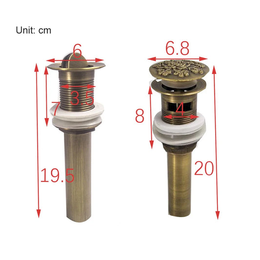 Bathroom Lavatory Basin Sink Pop Up Drain with Round Carved Cover Brass with & without Overflow Vanity Sink Waste Drainer