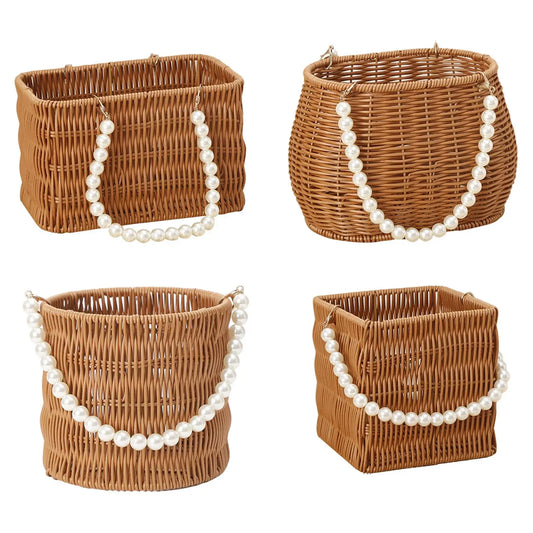 Imitation Rattan Basket Flower Basket Artificial Pearl Handle Stylish Appearance Versatile Picnic Basket for Lotions Toiletries