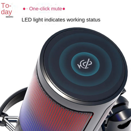 USB Microphone RGB Microfone Condensador Wire Gaming Mic for Podcast Recording Studio Streaming Laptop Desktop PC