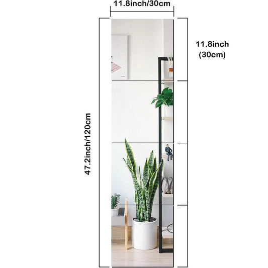 Acrylic Full Length Wall Mirror Tiles 30*30CM 4 Pcs Shatterproof Mirror Wall-Mounted Full Body Mirror Tiles for Bedroom Home