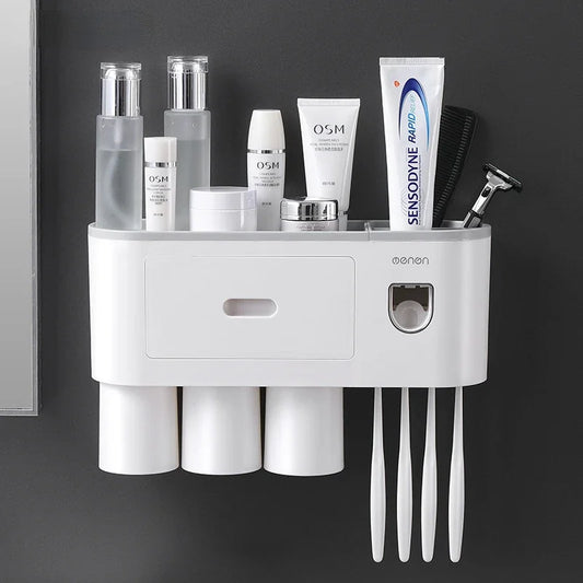 Magnetic Adsorption Inverted Toothbrush Holder Wall -Automatic Toothpaste Squeezer Storage Rack Bathroom Accessories