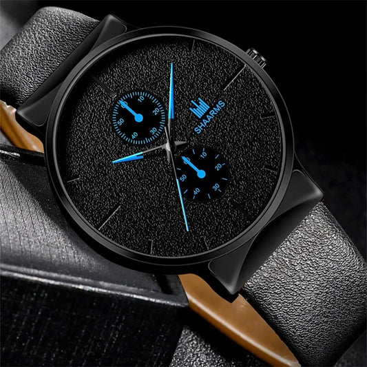 3pcs Set Fashion Mens Watches Luxury Casual Leather Quartz Wristwatch Men Business Sports Wrist Watch Bracelet Necklace Set