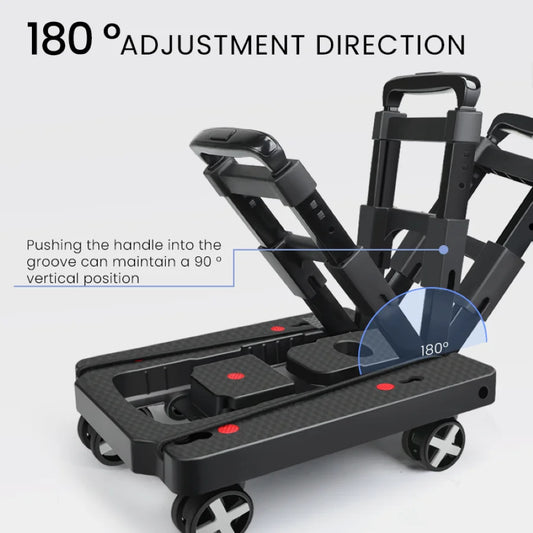 AIRAJ 4 Rounds Folding Hand Truck Black Small Lightweight Cart Portable Telescopic Dolly Backpack Luggage Travel Moving Shopping
