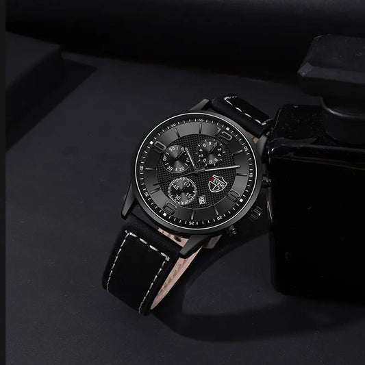 5PCS Set Fashion Mens Sports Watches Man Business Quartz Wristwatch Luxury Leather Bracelet Men Casual Clock Watch