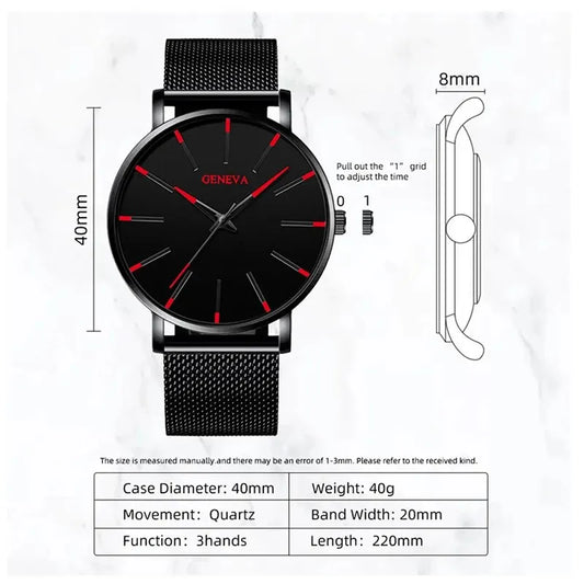 5pcs Luxury Black Stainless Steel Mesh Belt Quartz Watch With Bracelet For Men Casual Fashion Round Watch In Daily Sport Watches