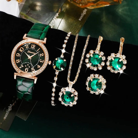 6PCS Set Women Watches Luxury Female Clock Quartz Wristwatch Green Dial Fashion Ladies Wrist Watch Reloj Mujer Relogio Feminino