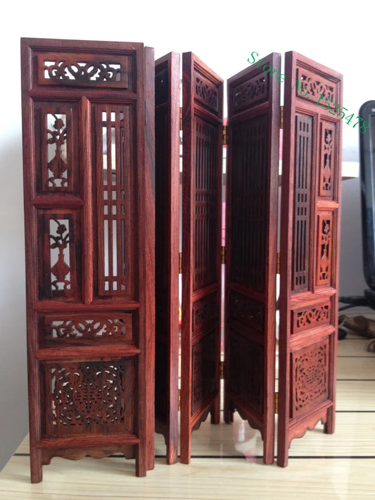14.75 inch Exquisite Hand-carved Chinese Boxwood & Sculpture Folding Screen Home decoration tabletop decorative crafts