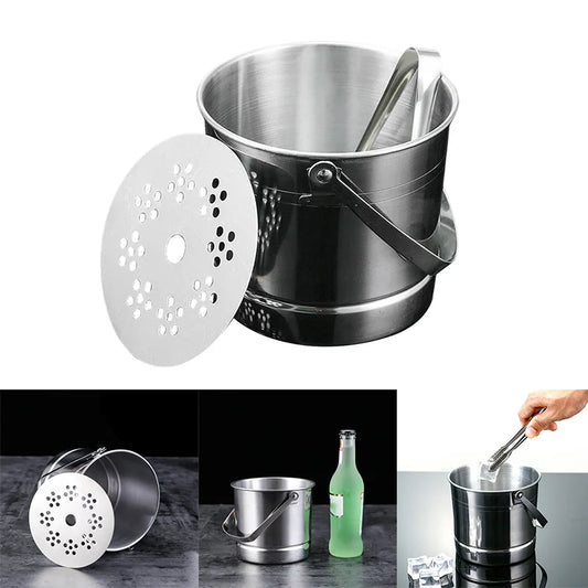 1L Ice Bucket With Tongs Double Wall Strainer Handle Home Bar Parties Chilling Beer Champagne Stainless Steel Cooler Buckets
