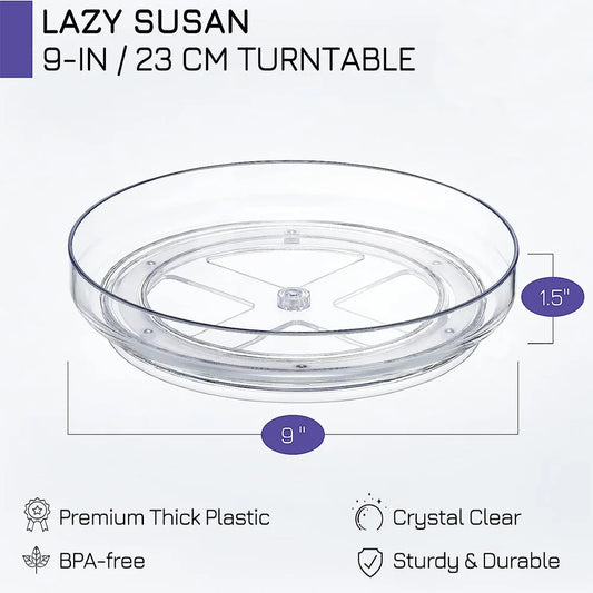 1PCS 9 Inch Lazy Susan Spice Rack Organizer, 360 Degree Rotating Round Lazy Susan Turntable for Cabinet, Clear