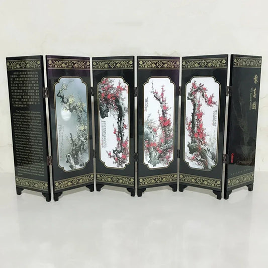 Mini Folding Screen Chinese Style Gift View Home Tabletop Decoration Doll Room Partition Divider 6 Panels Vintage Wood Screen