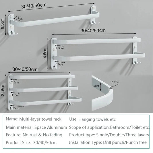 Bathroom Accessories Wall Mounted Towel Rack Space Aluminum Shower Room Holder Towel Hanger 30-50CM Multilayer Towel Bar