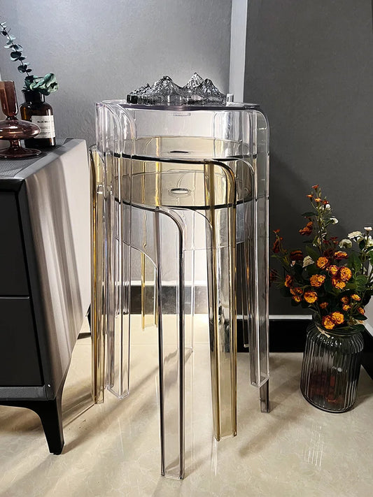 Transparent Plastic Stool Household Thickened Acrylic High Stool Table Stackable Bench Simple Modern Living Room Chair