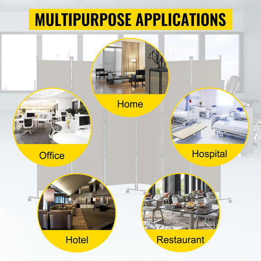 VEVOR 6 Panel Room Divider 6 FT Freestanding & Folding Privacy Screen w/ Swivel Casters & Oxford Bag Partition for Office Home