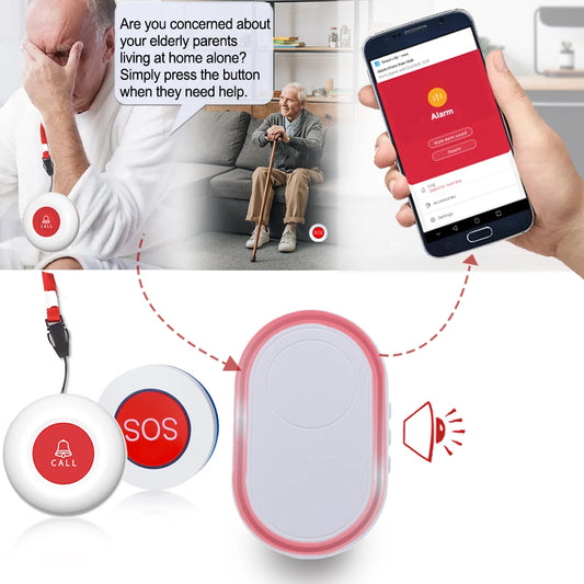 Topvico Wifi Panic Button Alarm Fall Prevention for Elderly Dementia RF433mhz Wireless Bed Alarm Caregiver Pager Tuya APP
