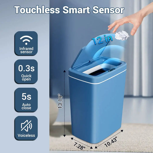 Bathroom Touchless Trash,12L Motion Sensor-Activated Trash Can with Lid,Automatic Kitchen Trash for Office,Living Room,Bedroom