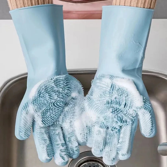 Dishwashing Cleaning Gloves Magic Silicone Rubber Dish Washing Gloves for Household Sponge Scrubber Kitchen Cleaning Tools
