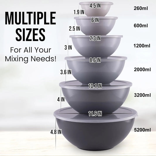 Kitchen 12 Piece Plastic Mixing Bowls with Lids Set - Mixing Bowl Set - Nesting Bowls with Lids Set - Microwave and Freezer Safe