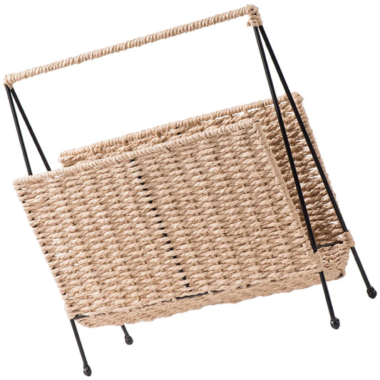 Magazine Basket Storage Woven Holder Rack Standing Rattan Book Organizer Stand Floor File Snack Bin Baskets Wicker Farmhouse