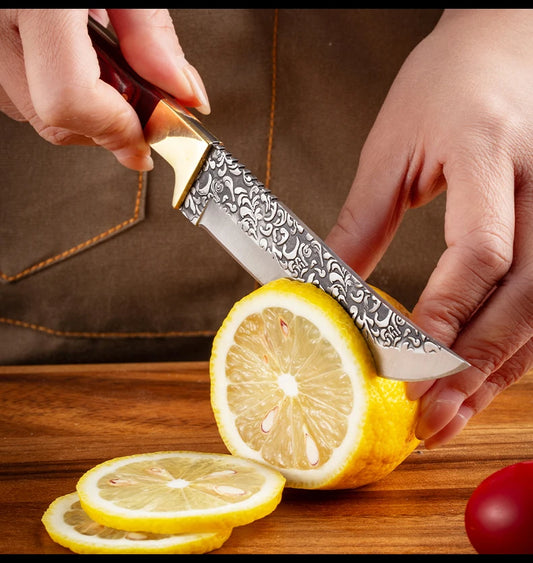 Meat Cleaver Knife with Patterned Blade - Perfect for Meat & Fruit Cutting, steak knife