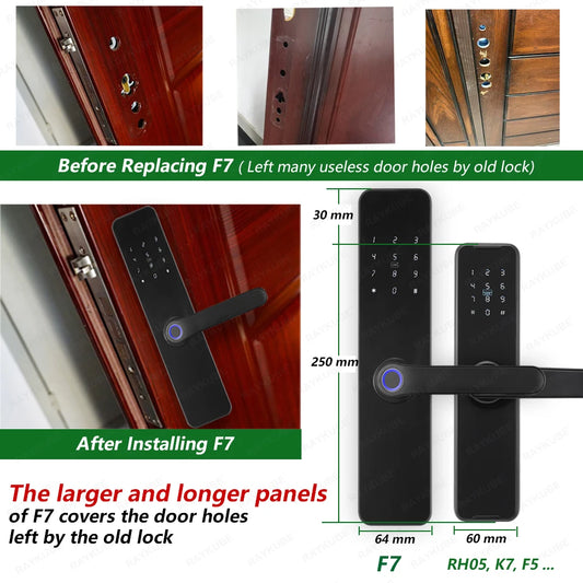 RAYKUBE F7 TT Lock Smart Fingerprint Lock Electric Door Lock With Longer Larger Handle Panels Mirror Design APP Remote Control