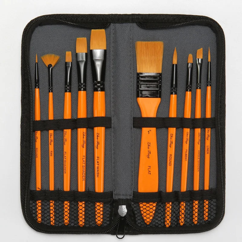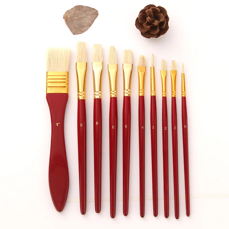 Discover your inner artist with this 10-piece set of professional grade paint brushes. Made with high quality wooden handles and nylon pointed hair, these brushes are perfect for a variety of mediums such as watercolor, oil, and acrylic painting. Create stunning works of art with ease and precision using these superior quality brushes.