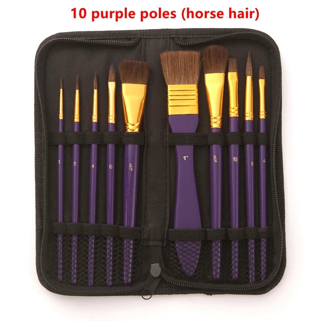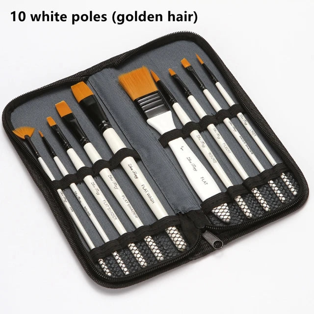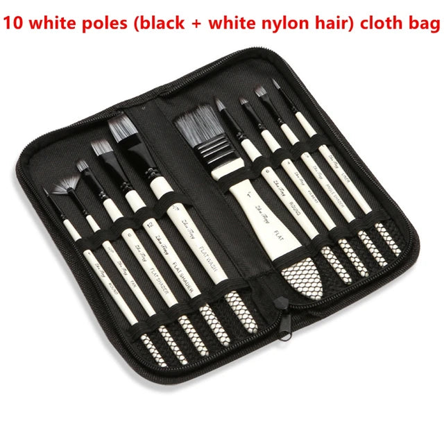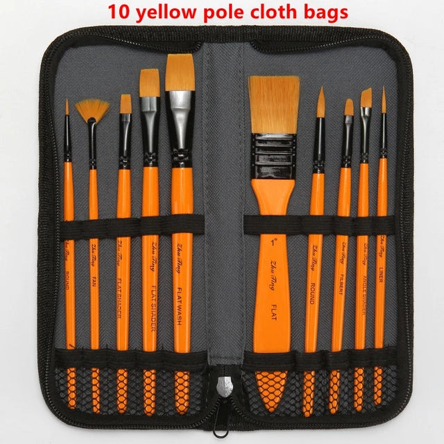 10Pcs/Set Artists Paint Brush Watercolor Wooden Handle Nylon Pointed Hair DIY Oil Acrylic Painting Art Paint Brushes Supplies