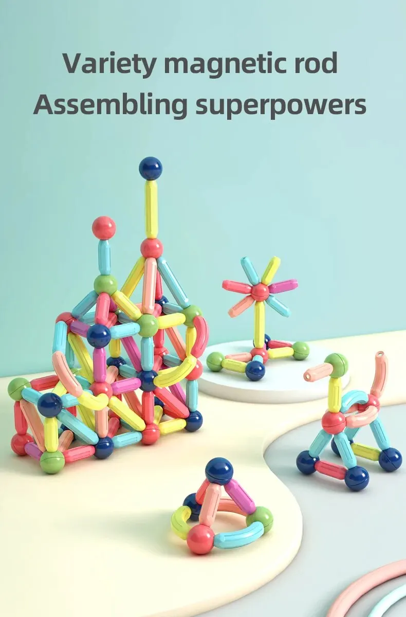 This learning toy is an open-ended magnetic construction toy for all age children, developing their hand-eye coordination ability, visual space awareness and fine motor skills, Increase their patience and promoting your kids Imagination, creativity when building fun designs.Magnetic sticks building blocks for kids early development.
