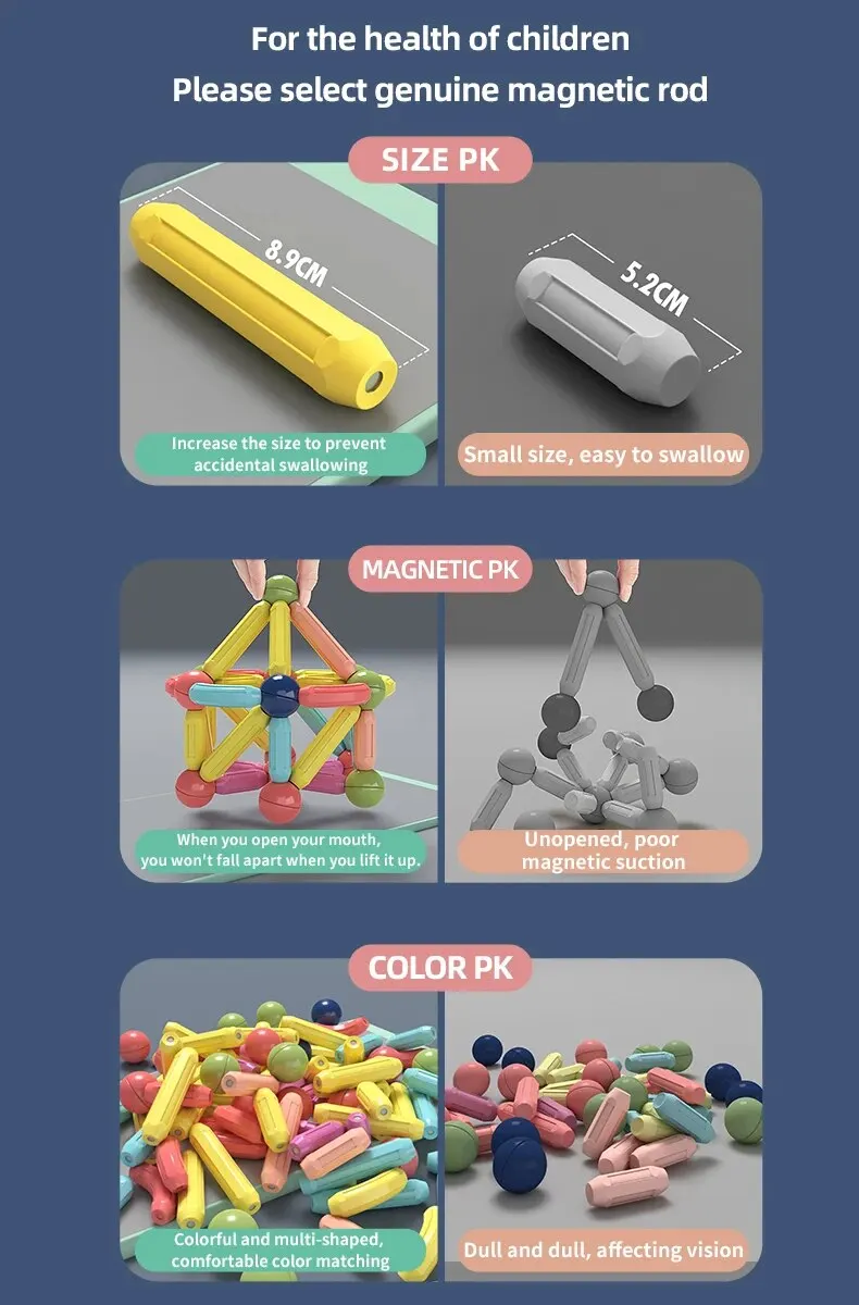 • Educational Toy :This Magnetic Building Blocks Toy is not just a plaything but also an educational tool, designed to stimulate children's creativity and problem-solving skills.