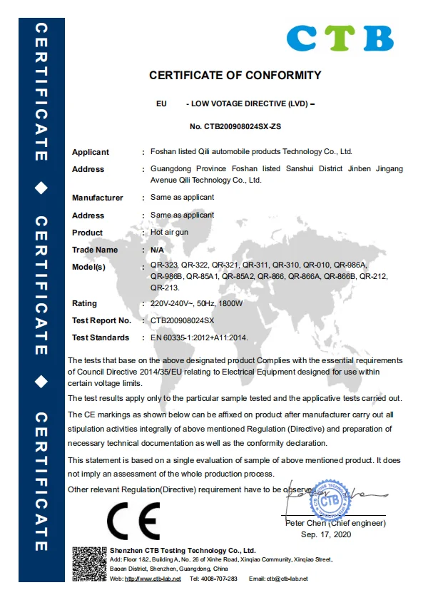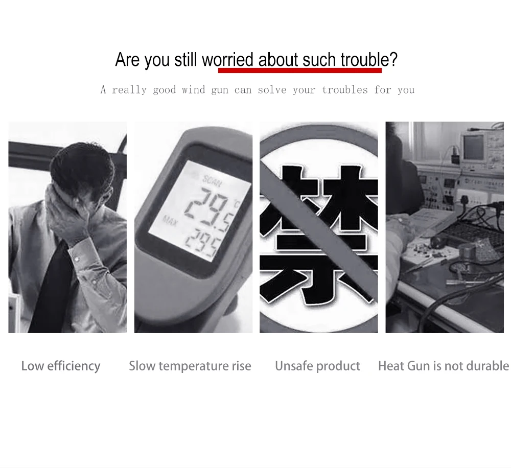 ④ After the hot-air gun is used, the air outlet is upward and can be stored only after the air gun is cooled.