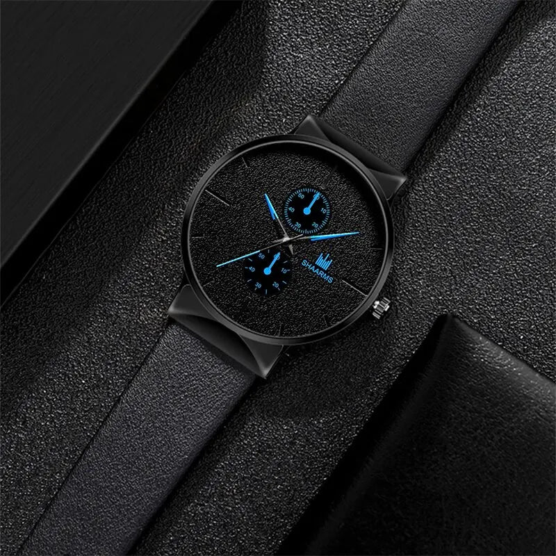 • Leather Strap :Crafted from high-quality leather, the watch strap offers a comfortable fit and a stylish appearance for the fashionable man.