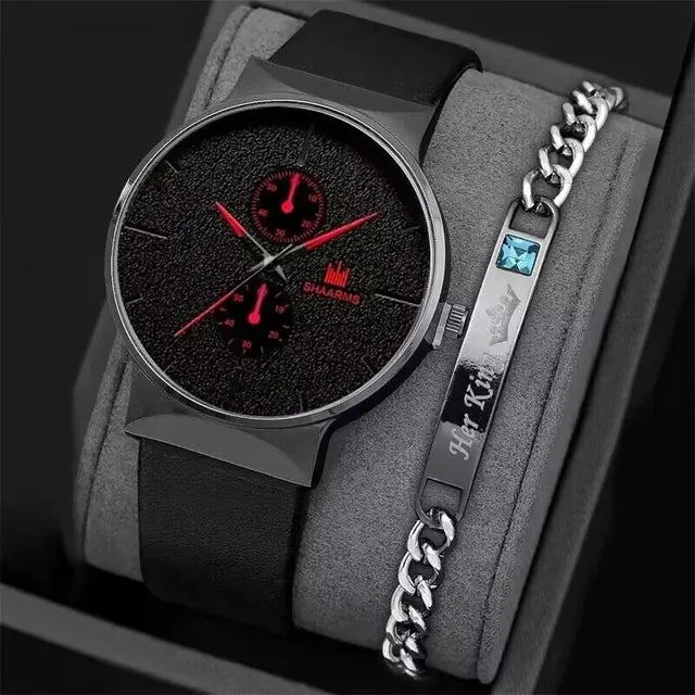 2pcs Set Fashion Mens Sports Watches Man Business Quartz Wristwatch Luxury Men Casual Clock Watch Relogio Masculino