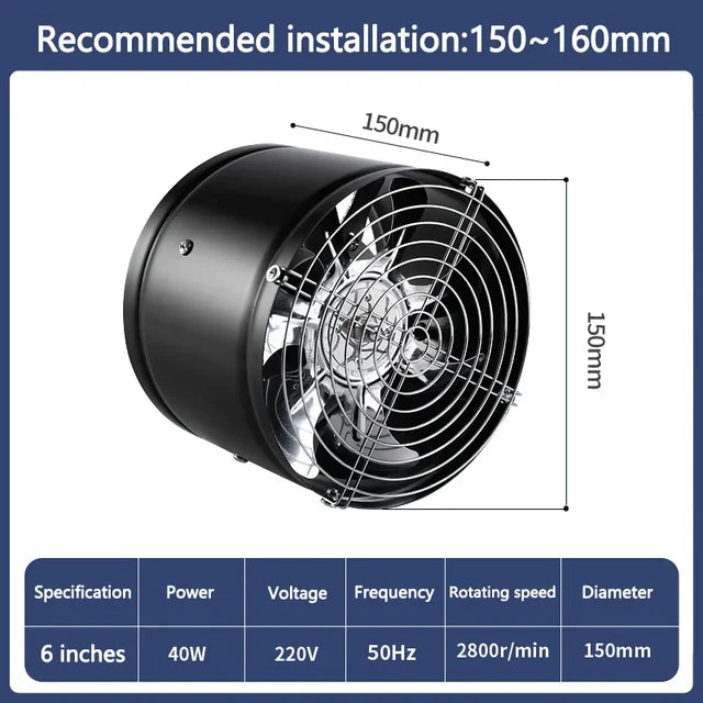 4''6''8'' Pipe Exhaust Fan Air Ventilator Metal Pipe Ventilation Exhaust Fan Mini Extractor Bathroom Toilet Wall Fan Duct Fan