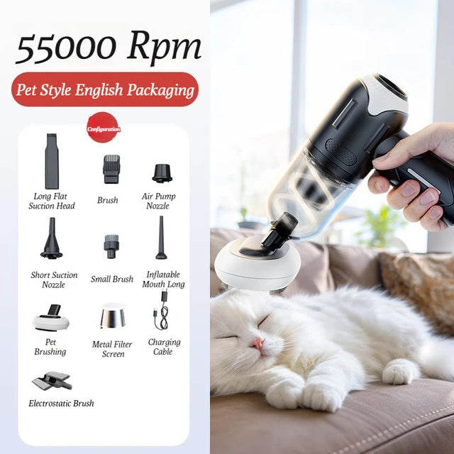 Efficiently remove pet hair and allergens with our 75000Pa wireless vacuum cleaner. Perfect for grooming cats and dogs, this rechargeable household and car cleaner ensures a clean environment. Its powerful suction and multiple attachments provide a thorough clean. Say goodbye to pet hair and hello to a spotless home.