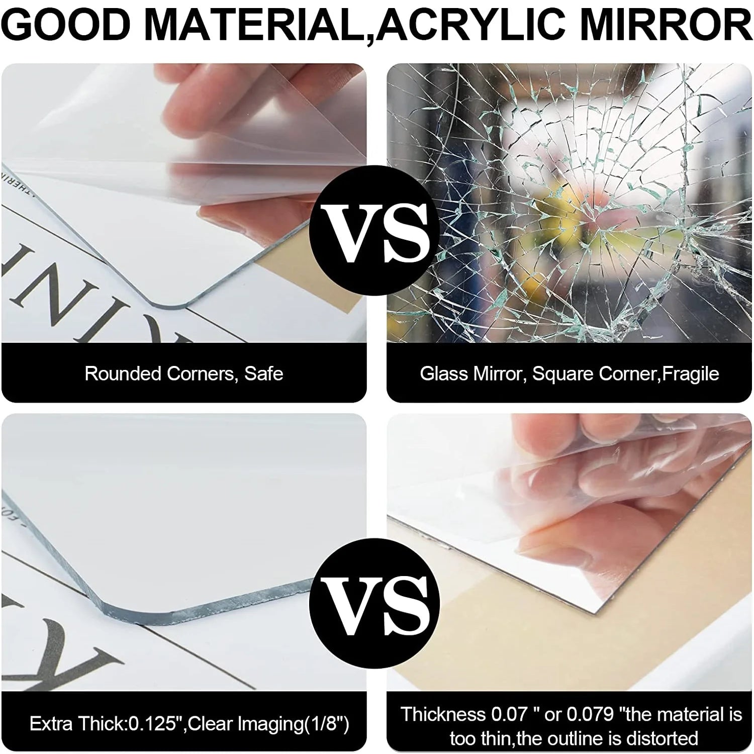Acrylic Full Length Wall Mirror Tiles 30*30CM 4 Pcs Shatterproof Mirror Wall-Mounted Full Body Mirror Tiles for Bedroom Home