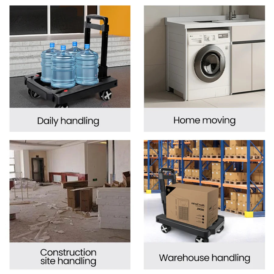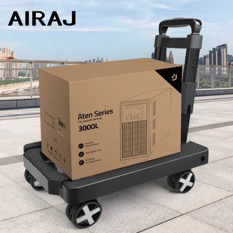 Effortlessly transport your belongings with the AIRAJ 4 Rounds Folding Hand Truck. With its lightweight and portable design, this cart is perfect for travel, shopping, or moving. Its telescopic dolly and backpack feature provide convenient and practical use. Made of durable materials, this black hand truck can easily handle your needs.