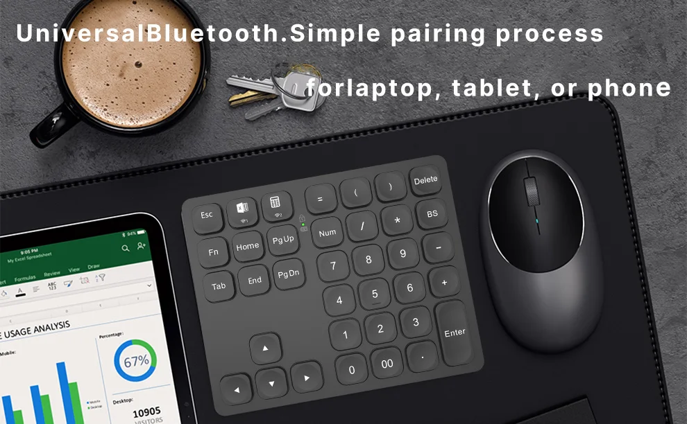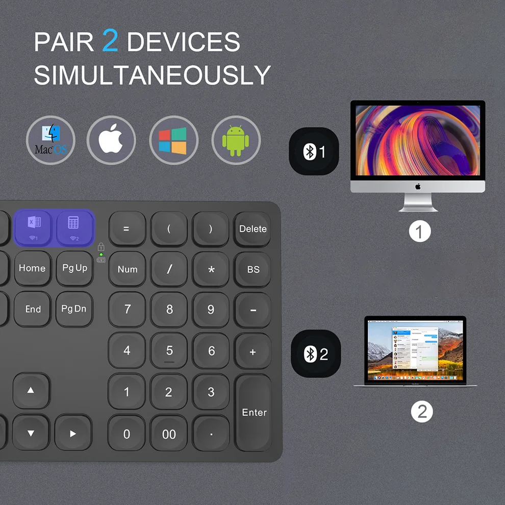 BOW Dual Bluetooth Numeric Keyboard Rechargeable Wireless Number Numpad for iPad Laptop Windows ios Slinet Digital Keyboard