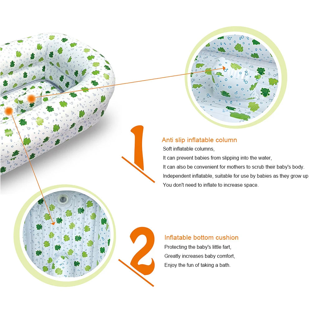 Baby Inflatable Bathtub Prevent Baby Sliding Folding Inflatable Bathtub Portable Swimming Pool Bath Basin for 4-24 Months Babies