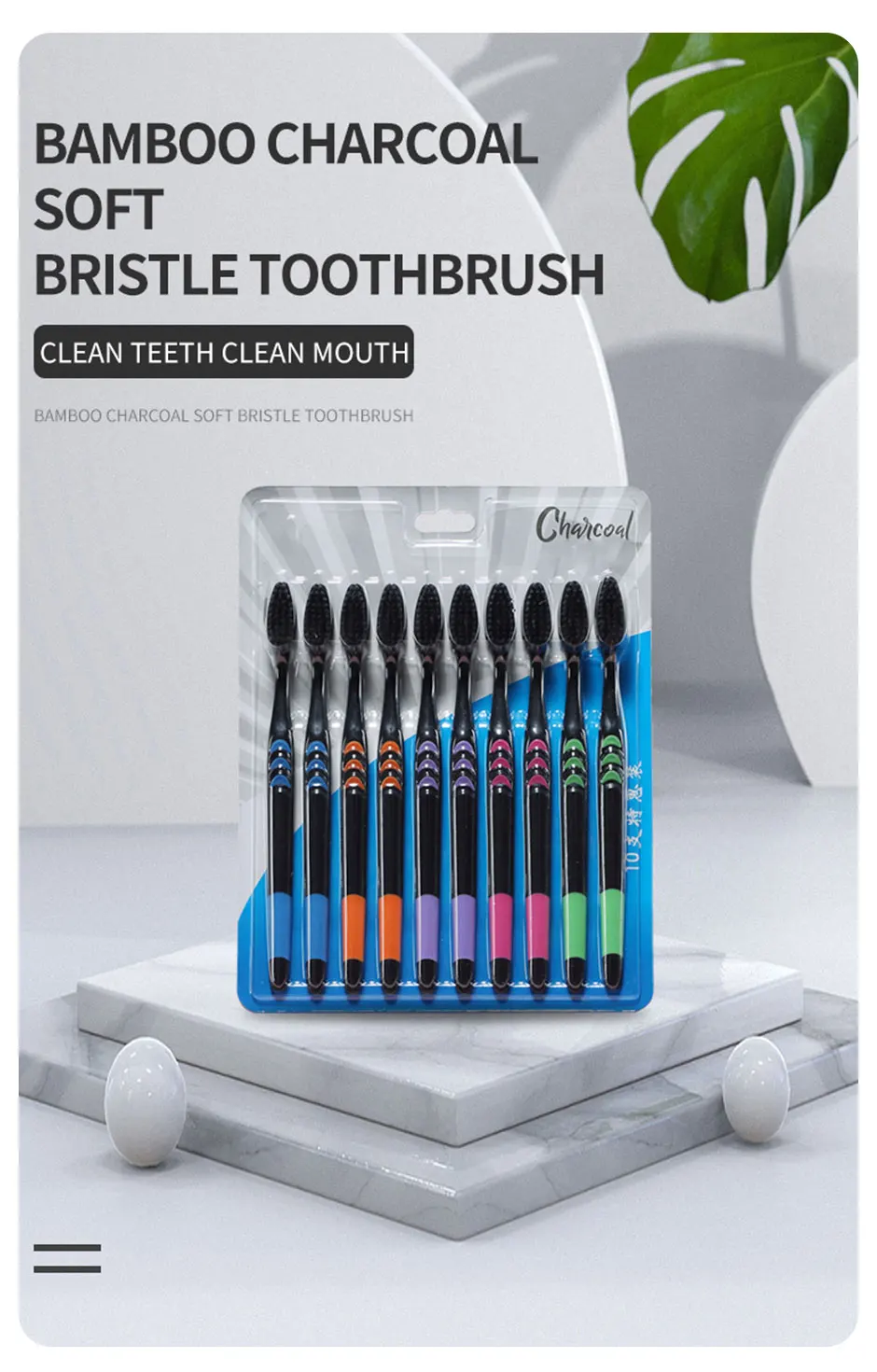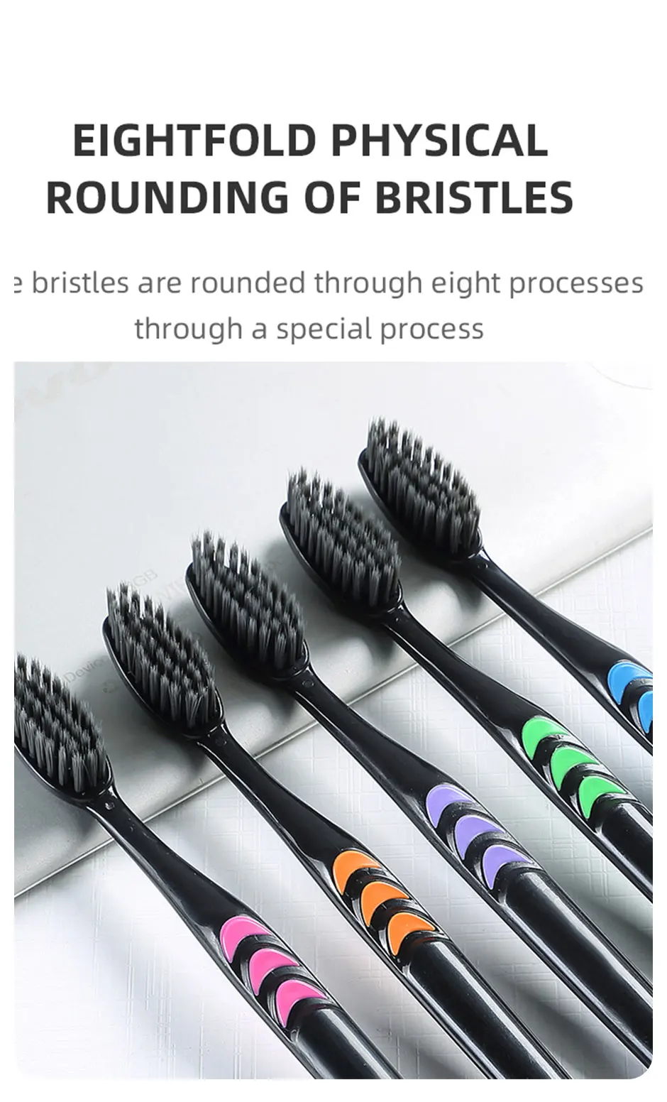 • Bamboo Charcoal :The toothbrush's bamboo charcoal bristles help to remove plaque and promote healthy teeth and gums.