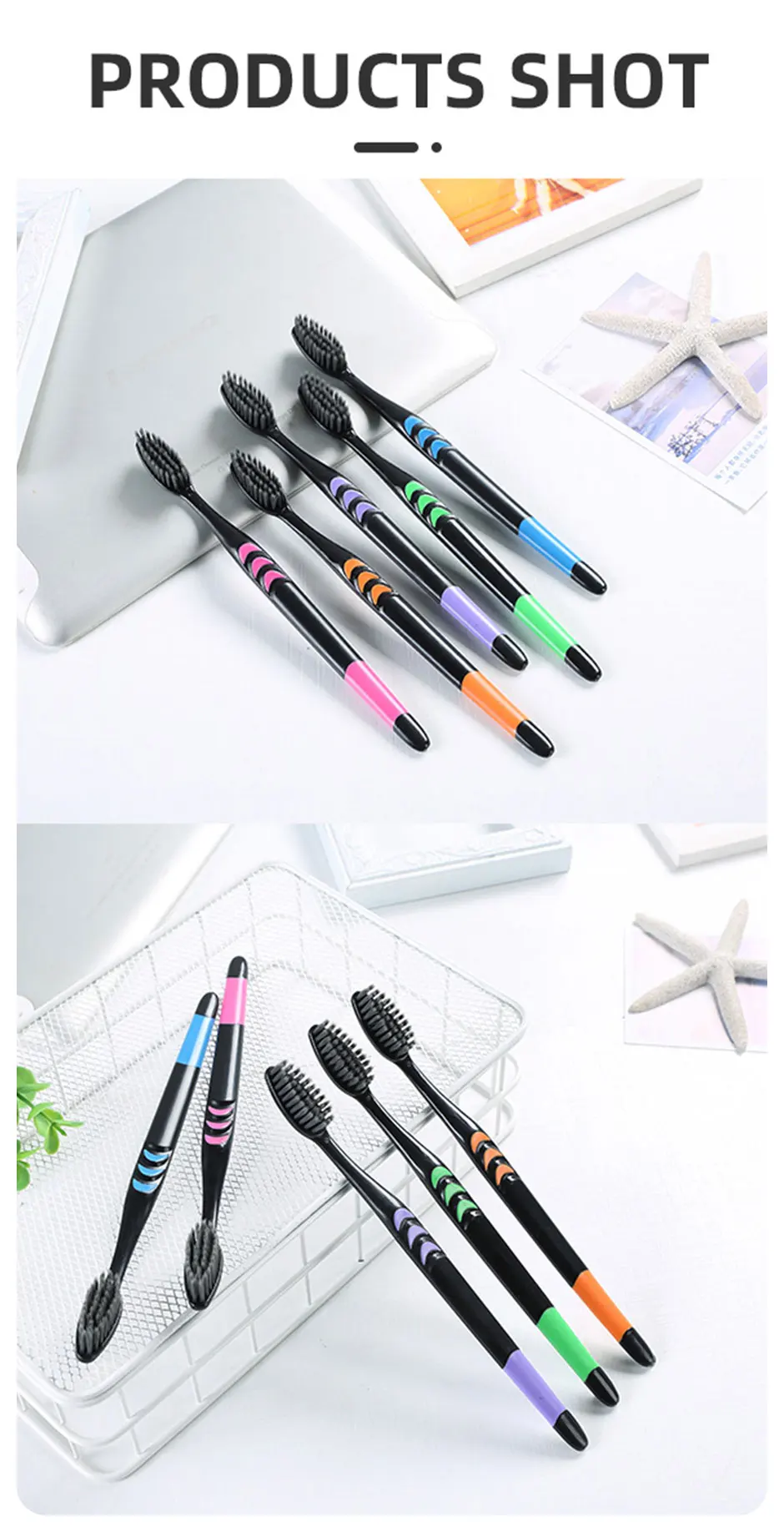 4.Wash thoroughly after each use of toothbrushand try to shake off the moisture,and then put the toothbrush in a ventilated place with sunlightto make it dry and sterilization.