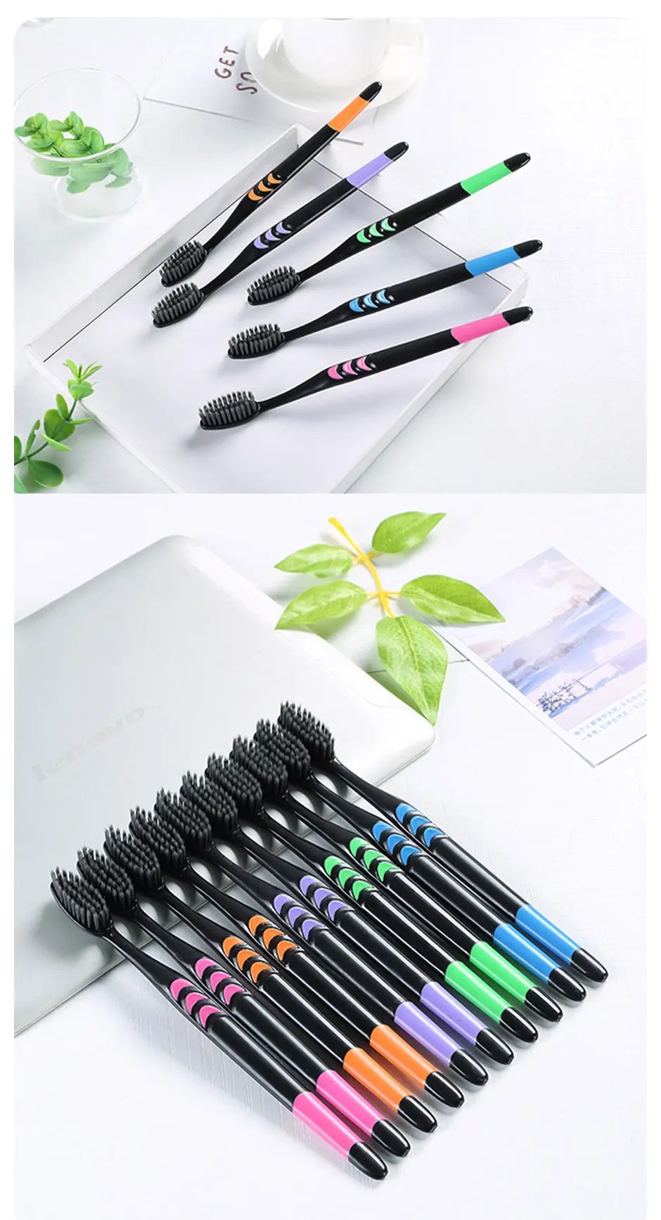 Cross Border Jianpai Soft Bristle Toothbrush Adult Bamboo Charcoal Household Fine Hair Toothbrush Antibacterial Men and Women