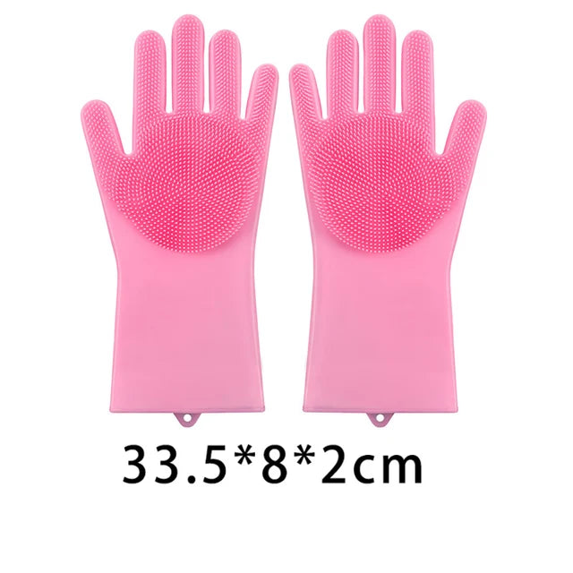 Dishwashing Cleaning Gloves Magic Silicone Rubber Dish Washing Gloves for Household Sponge Scrubber Kitchen Cleaning Tools